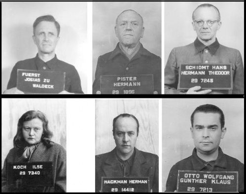 La plupart des inculpés étaient membres du personnel du camp, mais le chef des SS et de la police, Josias, prince héréditaire de Waldeck et Pyrmont, avait été inculpé, car le camp de concentration de Buchenwald se trouvait sous sa juridiction. Le commandant du camp, Hermann Pister, les membres du commandement, trois des médecins du camp, des officiers supérieurs de la SS ainsi que la veuve du premier commandant, Ilse Koch, furent inculpés. De plus, les chefs de quartier, les commandants de détachement, trois prisonniers fonctionnaires et employés civils furent également jugés.